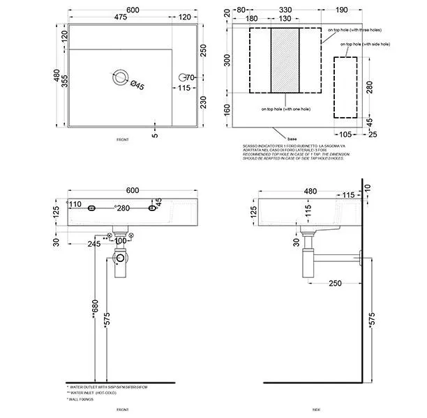 Раковина подвесная Cielo Enjoy EJLA60SF PL.