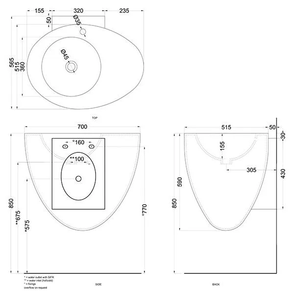 Раковина подвесная Cielo Le Giare LGLS70 PL.