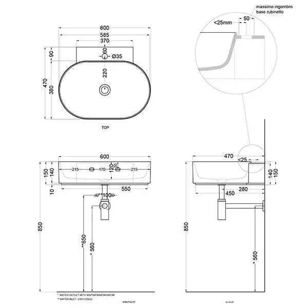 Раковина подвесная Cielo Mare MRLS60 AG.