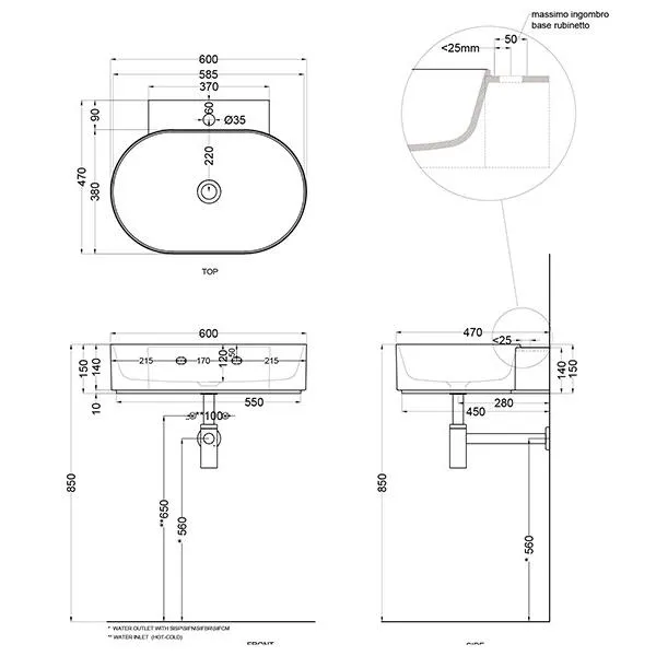Раковина подвесная Cielo Mare MRLS60 PM.