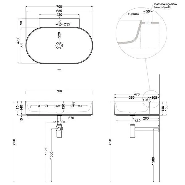 Раковина подвесная Cielo Mare MRLS70 BA.