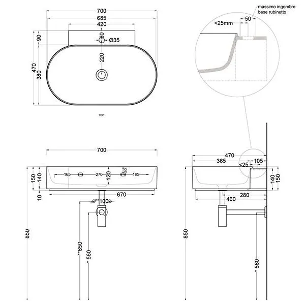 Раковина подвесная Cielo Mare MRLS70 CM.