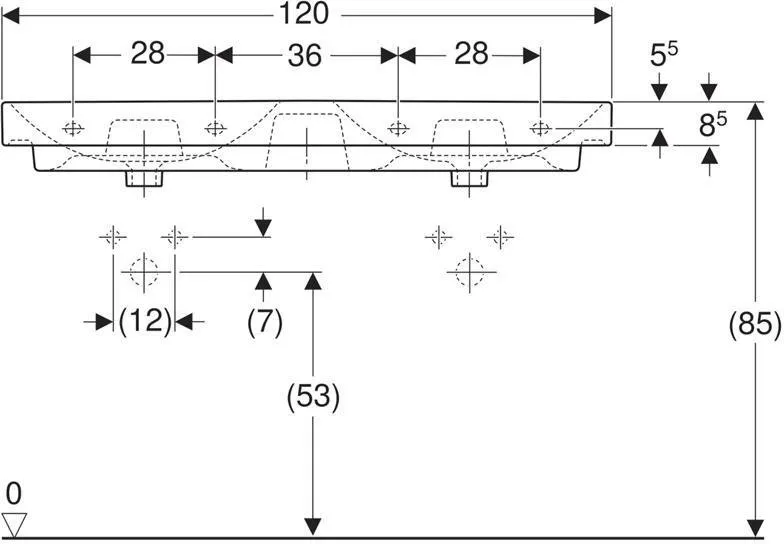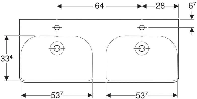 500.223.01.1 Smyle Square Раковина двойная 120х48 см, с отв. под смеситель, с отв. перелива