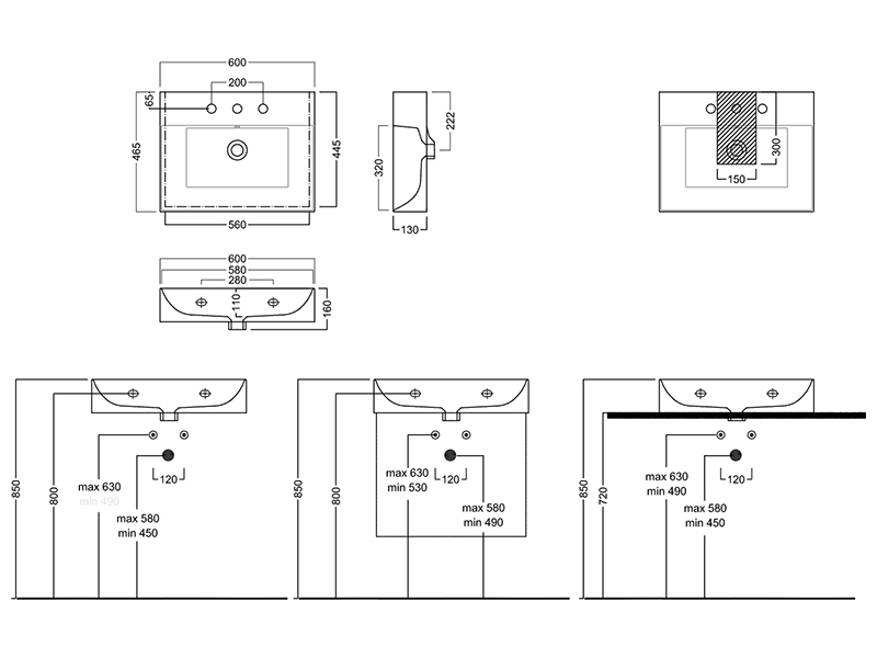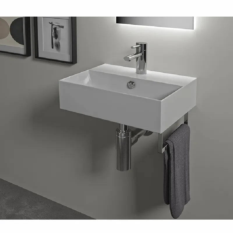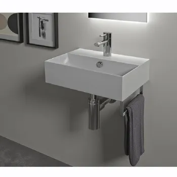 Раковина подвесная или встраиваемая в мебель HATRIA BAHIA_13 BH0600465011TS, одно отверстие для смесителя по центру, с отверстием перелива, размер 60х46.5x13 см, белая. Крепления, полотенцедержатель, структура под раковину заказывается отдельно.