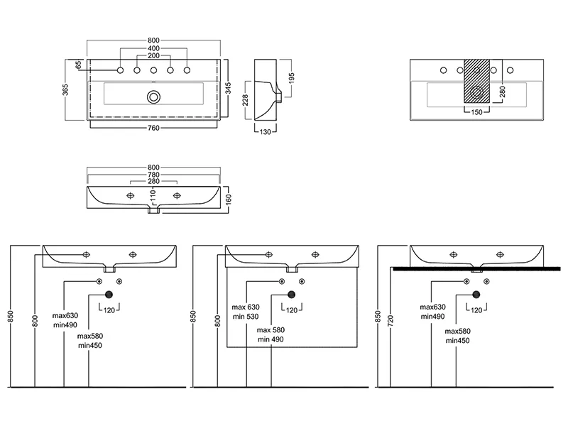 Раковина подвесная или встраиваемая в мебель HATRIA BAHIA_13 BH0800365011TS, одно отверстие для смесителя по центру, с отверстием перелива, размер 80х36.5x13 см, белая. Крепления, полотенцедержатель, структура под раковину заказывается отдельно.
