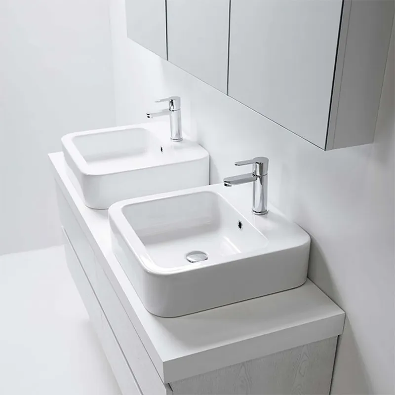 Раковина подвесная или накладная HATRIA HAPPY HOUR Y0M701, размер 48х48x13.5 см, цвет белый. Раковина с одним центральным отверстием под смеситель; с отверстием перелива. Устанавливается на стены с помощью крепежа (приобретается отдельно) или на столешницы, подстолья и мебель. Донный клапан и сифон приобретаются отдельно.