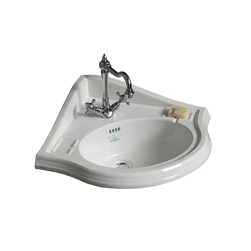1. **Эргономичный дизайн:** Угловая форма раковины максимально использует пространство, что делает её отличным выбором для небольших ванных комнат.