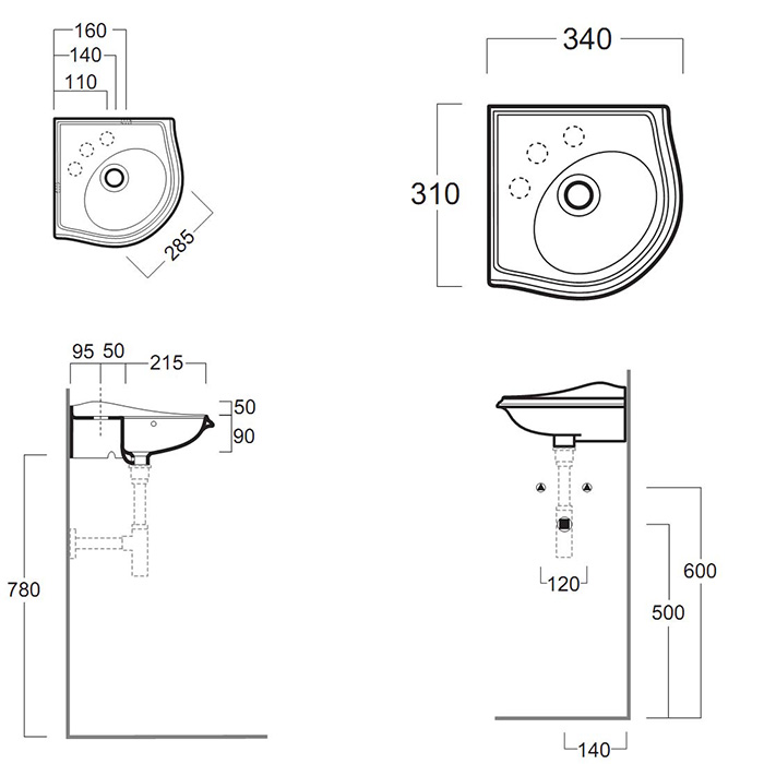 С размерами 34*31*14 см, эта раковина идеально вписывается в угловое пространство, преобразуя вашу ванную в удобное и элегантное место для отдыха.