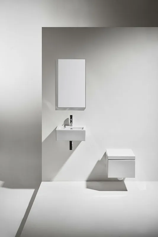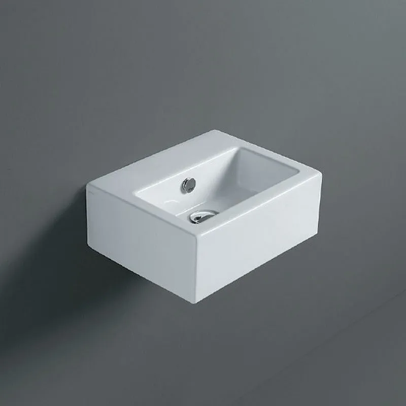 Раковина SIMAS FROZEN FZ 14 BIA 0 HOLE — это подвесная прямоугольная раковина без отверстий для смесителя.