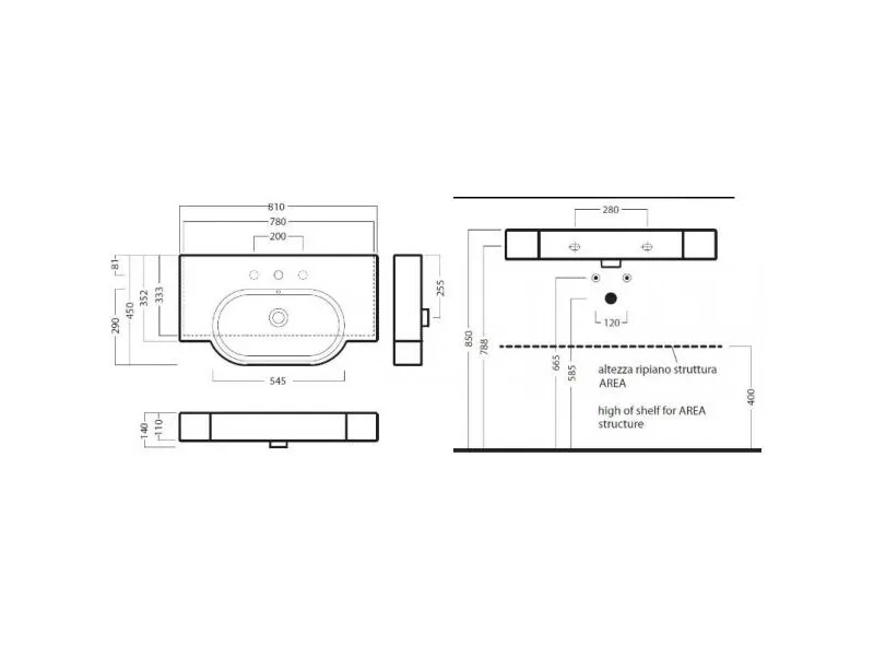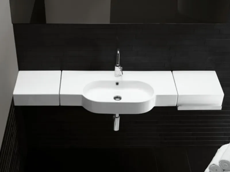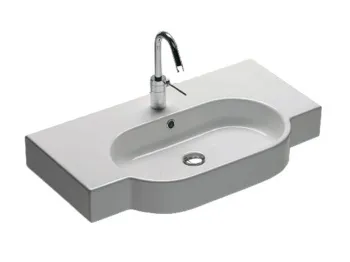 Раковина подвесная\встраиваемая HATRIA AREA Y0UP01, размер 81х45 см, цвет белый. Раковина может использоваться как в подвесном, так и во встроенном исполнении. Раковина поставляется под смеситель на одно отверстие посередине, по запросу можно выполнить три отверстия. Может дополняться хромированным полотенцедержателем, донным клапаном и сифоном. Устанавливается на стены с помощью крепежа (приобретается отдельно), устанавливается на мебель, столешницы и подстолья.