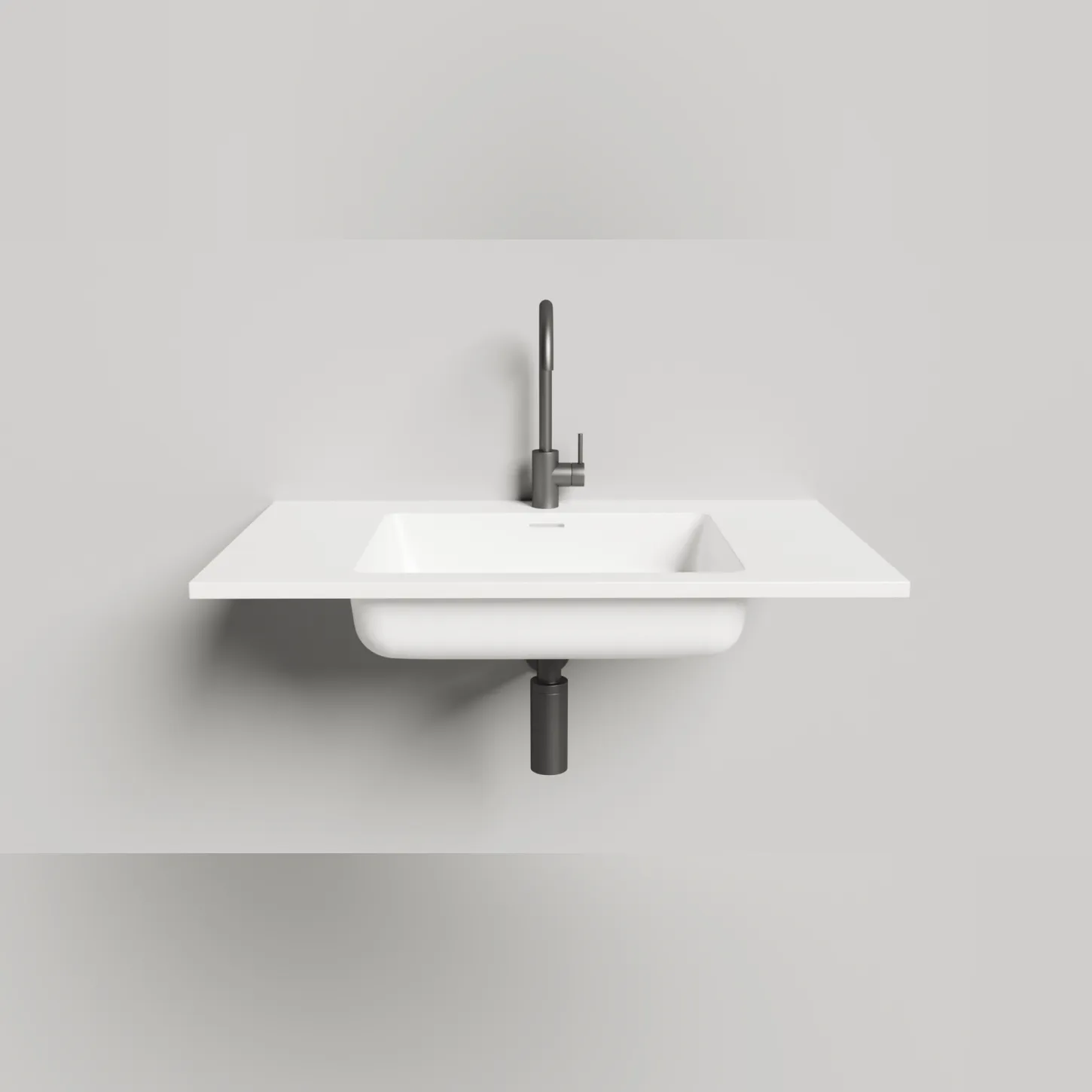 Идея и основное преимущество продукта – в широких возможностях индивидуального обреза, который ограничен только геометрией чаши. В том числе возможно изготовление вариантов раковины с левым / правым крылом для установки, например, над стиральной машиной.