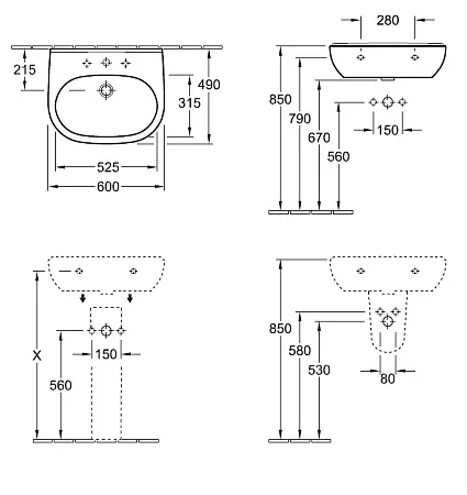 Раковина для 3-позиционного смесителя, центральное отверстие для смесителя выбито, с переливомразмер: 60x49смцвет: белый альпин
