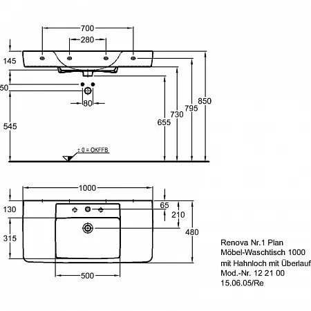 Раковина 100 см Geberit Renova Nr.1 122100000