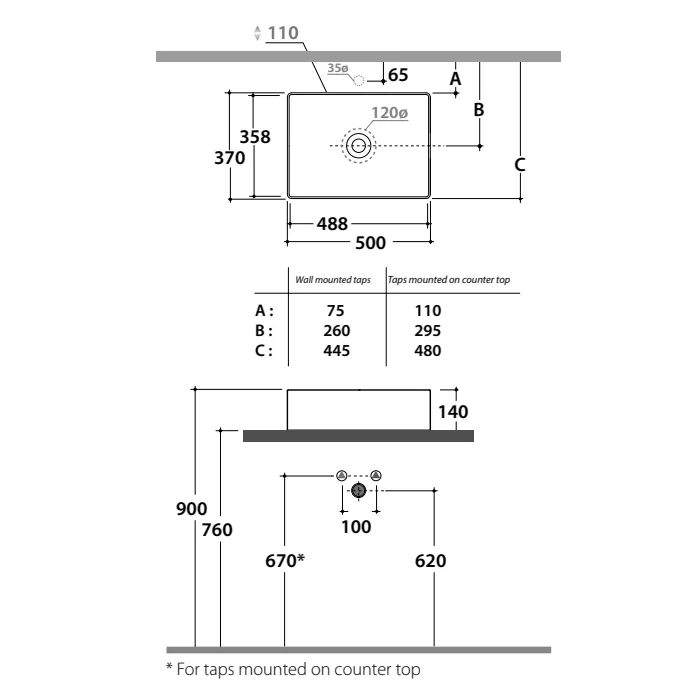 GLOBO B6R54BI Раковина T-EDGE для установки на столешницу, размер 50х37 см, цвет bi (Bianco)