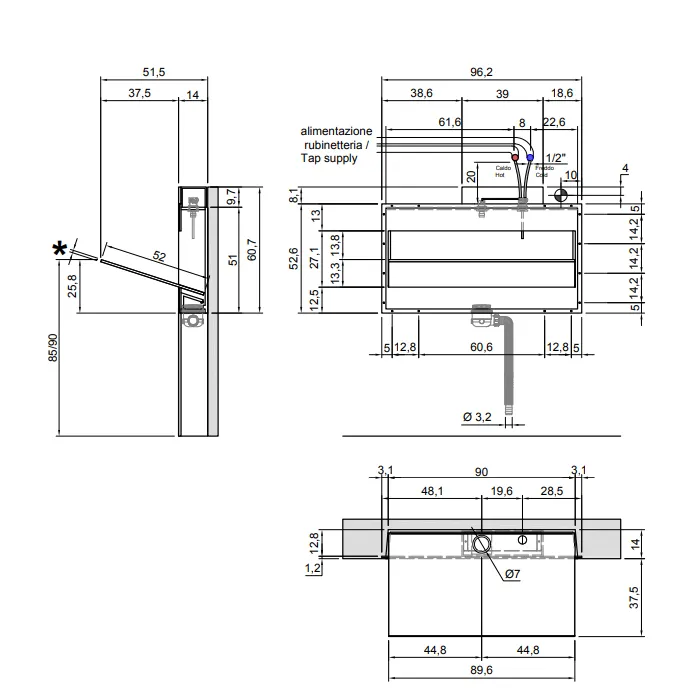 Раковина Antonio Lupi Battigia 90х51.5х60.7, без отв., белый А0002423497