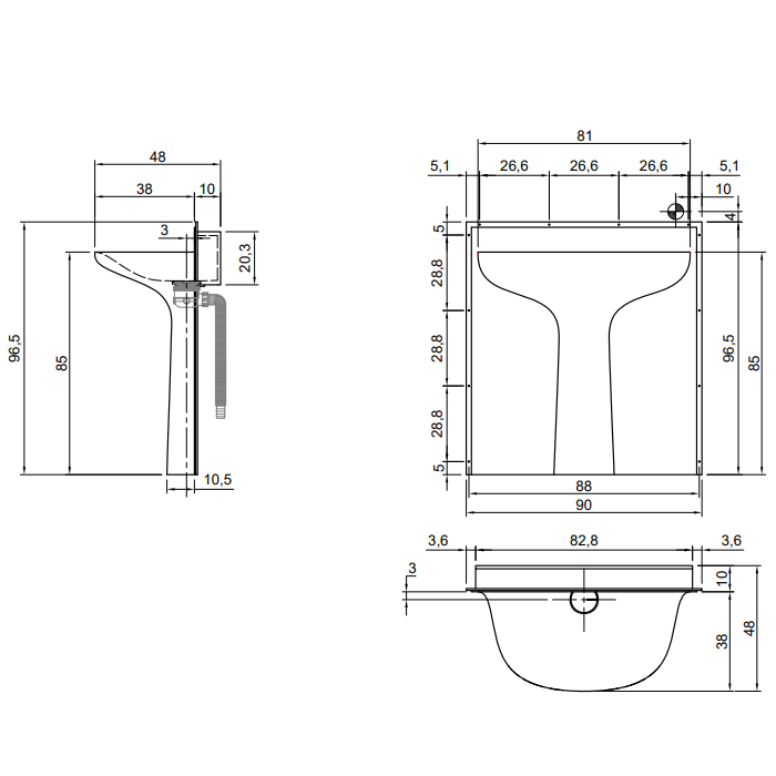 - Отверстия под смеситель: Без отверстий
