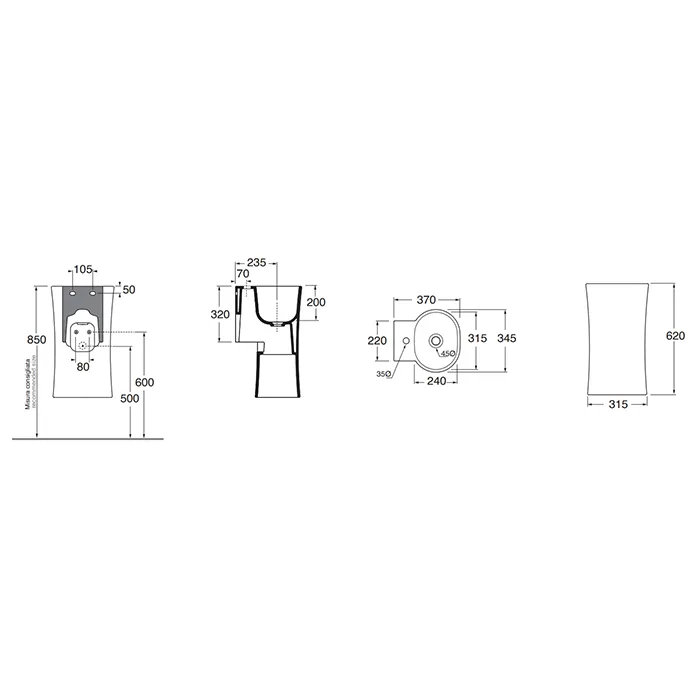 Раковина Azzurra Nativo 350х370х620, подвесная, с 1 отверстием для смесителя, в комплекте с креплением, carbone LALS035370NMCA