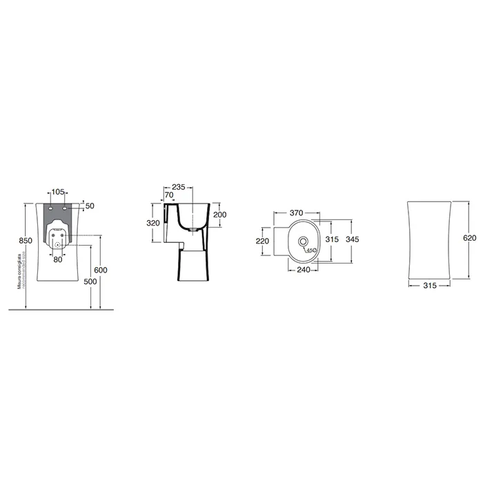 Раковина Azzurra Nativo 350х370х620, подвесная, без отверстий для смесителя, в комплекте с крепежом, antracite LALS035370N0AN