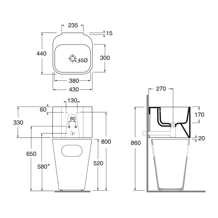 - Отверстия под смеситель: Без отверстий