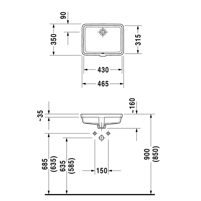 Duravit Vero Раковина встраиваемый для встраивания снизу, с перел., без площадки под смес., включая крепление для встраивания в деревянную столешницу
