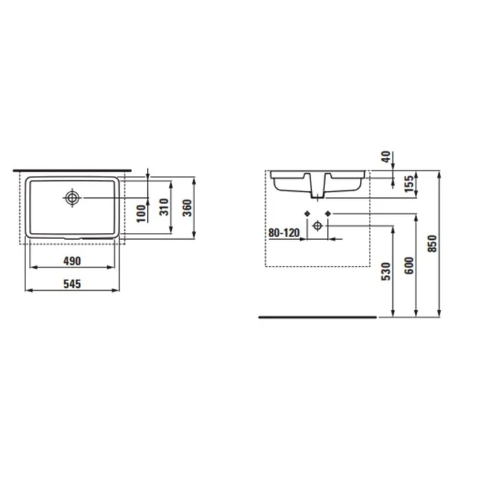Laufen Living City Раковина 545x360x155 мм без отв. под смеситель, встраив снизу, глазурь 2 стор, цвет: белый