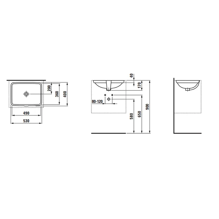 LAUFEN Pro Раковина встраиваемая 49х36х17 см, без отв под смеситель, необработанный нижний край, цвет белый