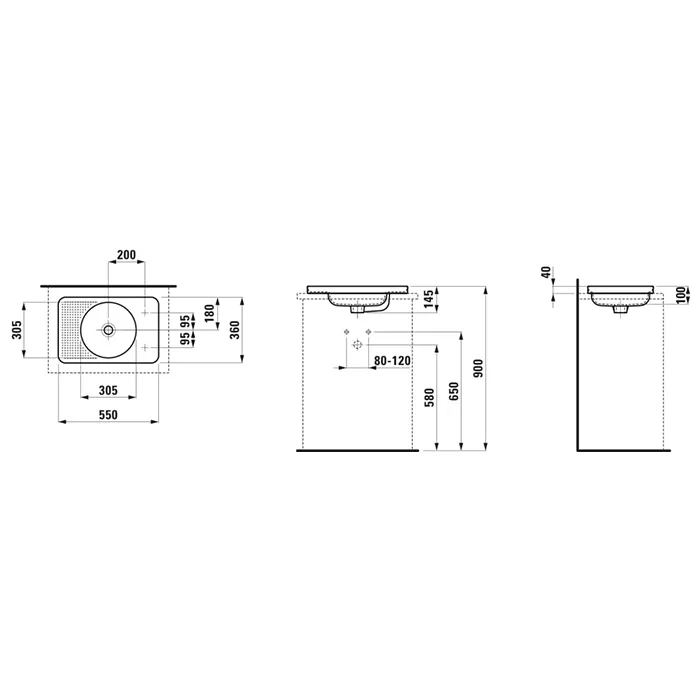 Laufen Val раковина врезная 550х360, без отверстия для смесителя, без перелива, SaphirKeramik, цвет белый