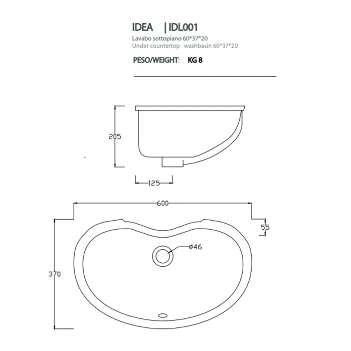 - Отверстия под смеситель: Без отверстий