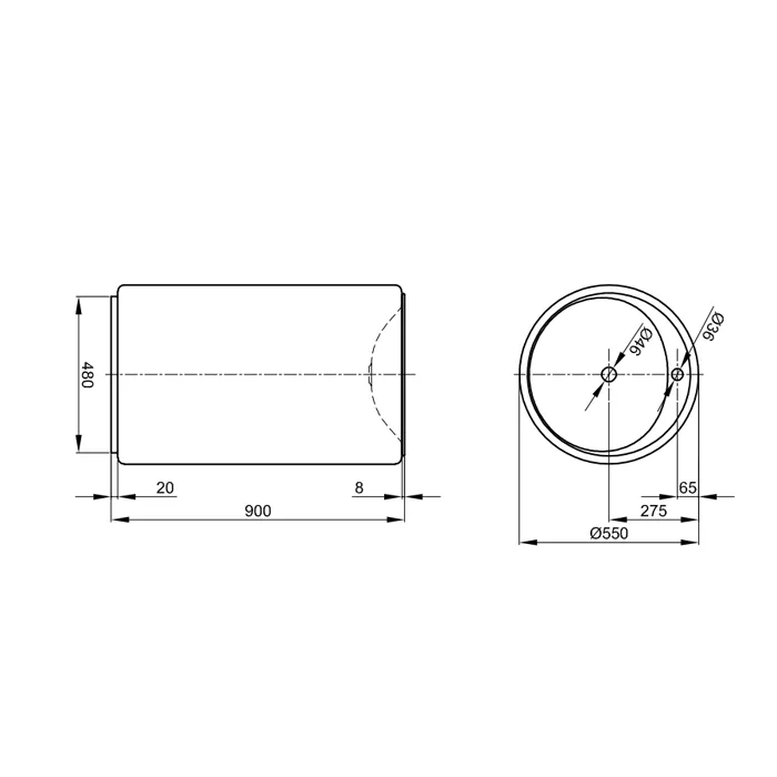 - Отверстия под смеситель: 1