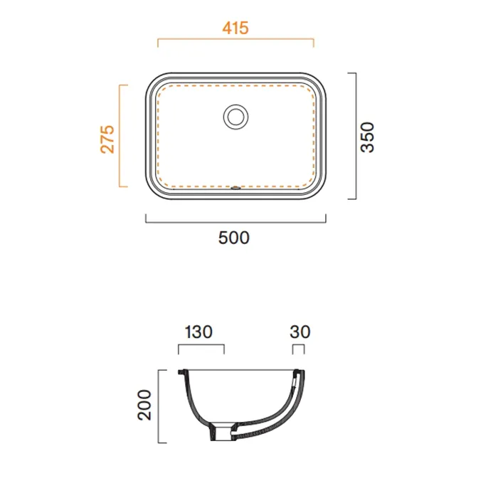 Раковина Catalano Italy 50х35, встраиваемая под столешницу с переливом, крепеж включен, белый глянцевый 727500001