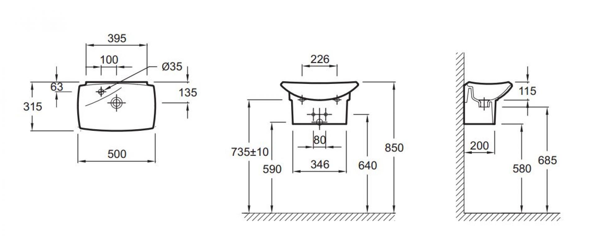 ESCALE Раковина 50х30.5см с 1отв. SX белая для п/держ. JACOB DELAFON