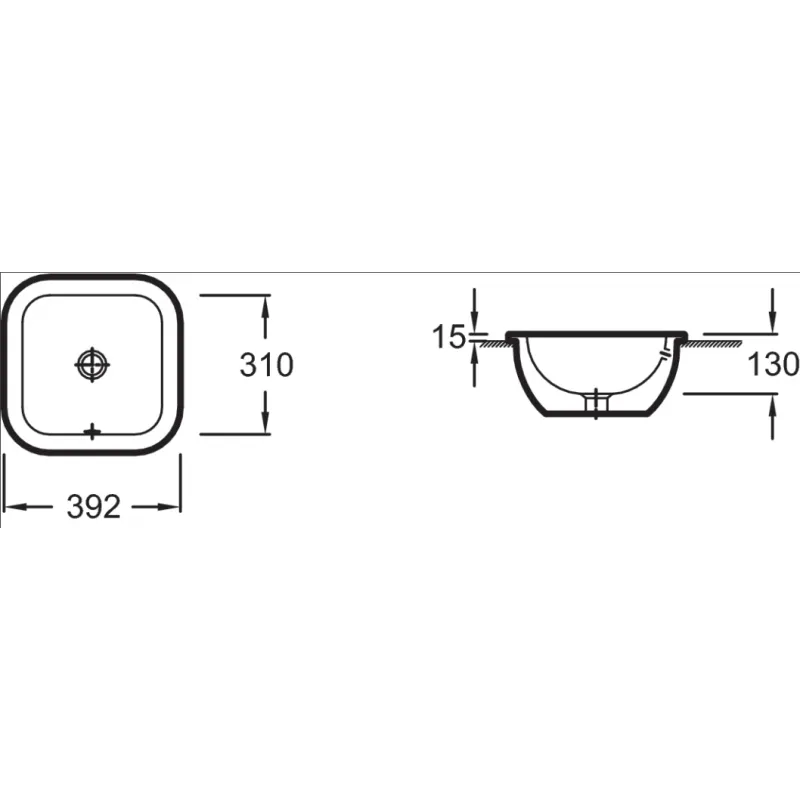 Встраиваемая квадратная раковина 39,2 х 39,2 см.