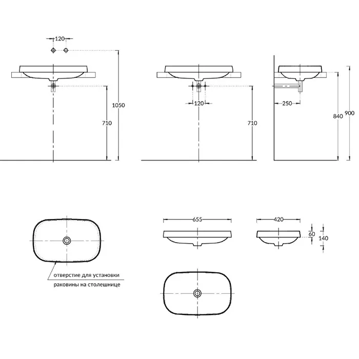 Раковина MAGICA встраиваемая сверху Kerama Marazzi 65 5x42x6см без отв. под смеситель, с донным клапаном, без перелива, бежевый камень MA.wbi.65\STB