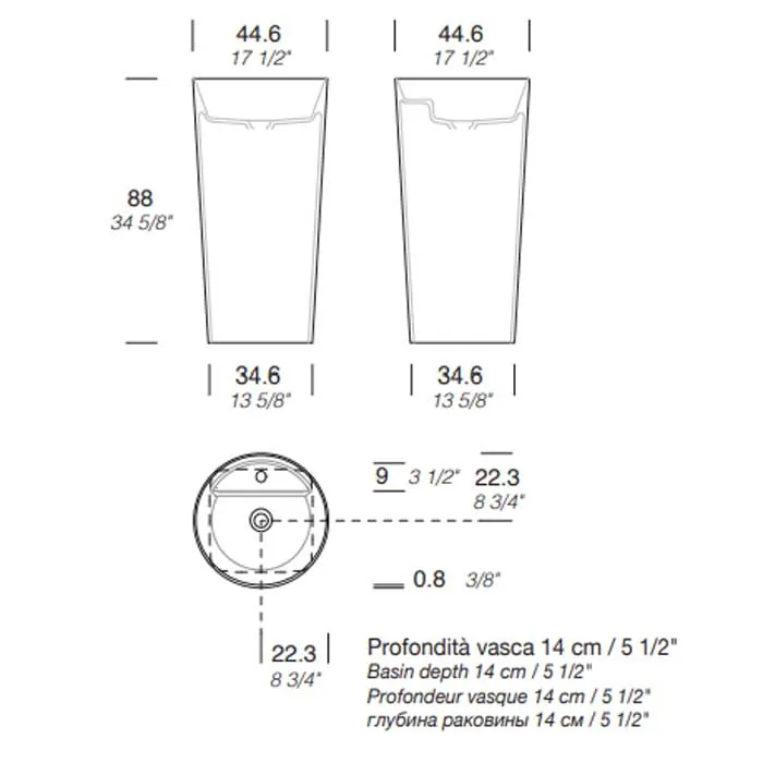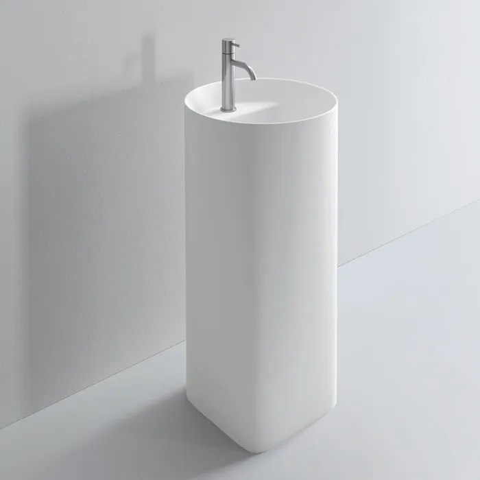 Раковина Milldue AZUMA 88 напольная из CRISTALPLANT ,D 44,6 H 88 ,слив в стену, 1 отв для смесителя, белый матовый 5708*1 Bianco Opaco