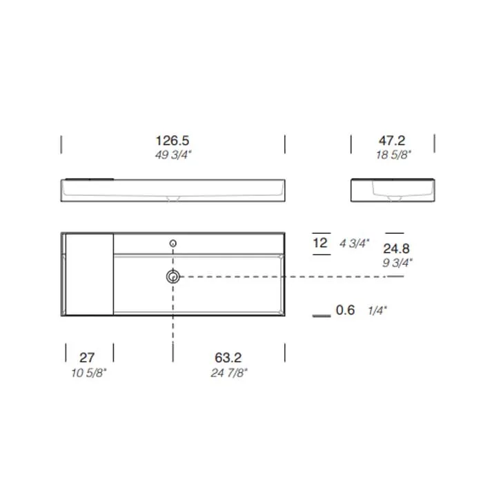 Раковина Milldue MAN 126 накладная из CRISTALPLANT ,126,5х47,2, с 1 отв для смесителя, белый матовый 2466*1 Bianco Opaco