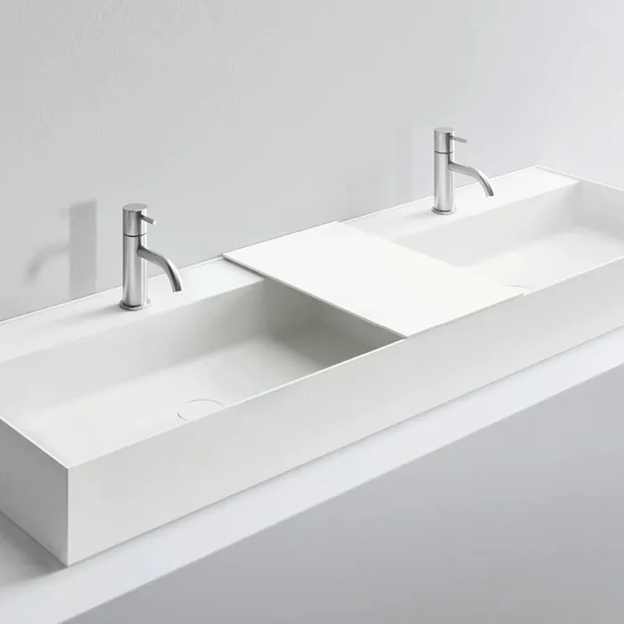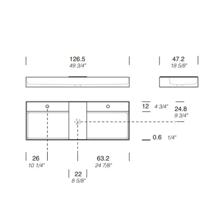 Раковина Milldue MAN 126 накладная из CRISTALPLANT ,126,5х47,2, с 2 отв для смесителя, белый матовый 2467*2 Bianco Opaco