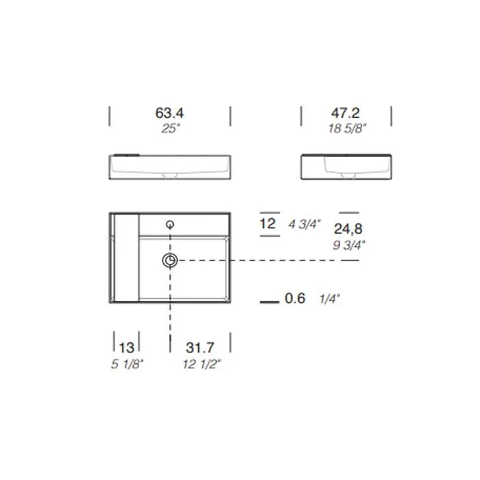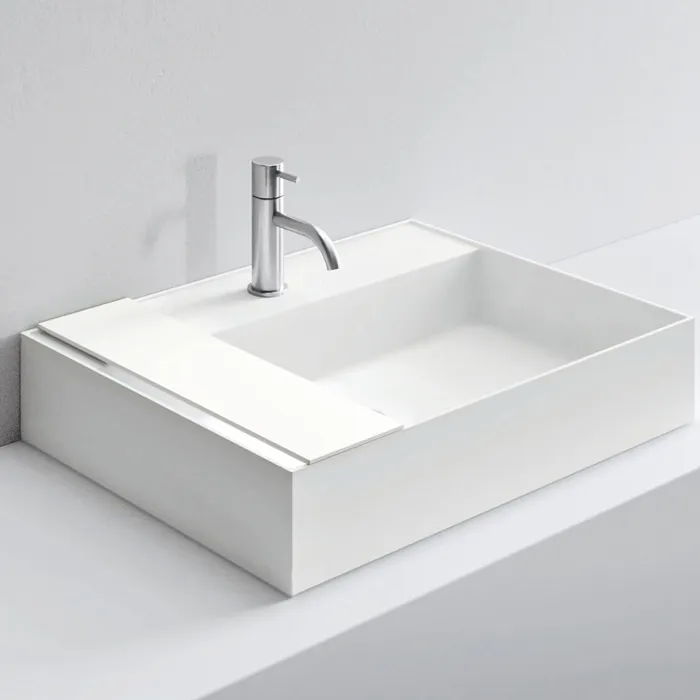 Раковина Milldue MAN 63 накладная из CRISTALPLANT ,126,5х47,2, с 1 отв для смесителя, белый матовый 2462*1 Bianco Opaco