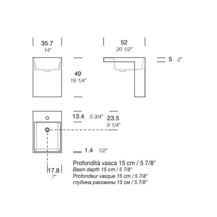Раковина Milldue PROP 49 полувстраиваемая из MILLTEK SOLID ,35,7х52х49, с 1 отв для смесителя, белый матовый 9195*1 Bianco Opaco