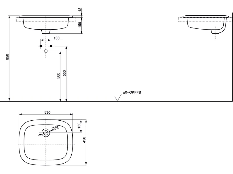 TOTO Public Раковина полувстариваемая сверху 530мм без отверстия под смеситель, с переливом. Технология покрытия CEFIONTECT. Размер: 53x45x17.7Н см. Цвет белый.