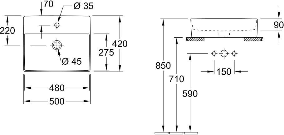 Лишенная всяких излишеств коллекция Memento 2.0 не останется незамеченной в элегантной ванной комнате премиум-класса: эксклюзивные раковины под столешницу изготовлены из инновационного материала TitanCeram. Четкие контуры и тонкие грани создают незабываемый элегантный дизайн в стиле минимализм, а множество вариантов комбинаций дают простор для самовыражения.одно отверстие для смесителяс переливом500x420х140 ммвырезной шаблон и крепления в комплекте поставкиматериал TitanCeram Новый взгляд на керамику. Вопрос о материале будущего уже не стоит перед Villeroy & Boch: сочетание специально отобранных натуральных компонентов позволило создать инновационный материал TitanCeram. Абсолютно новый керамический материал, сочетающий в себе все достоинства высококачественной керамики с исключительной прочностью, дает возможность изготавливать филигранные формы, впечатляющие своей тонкостью.