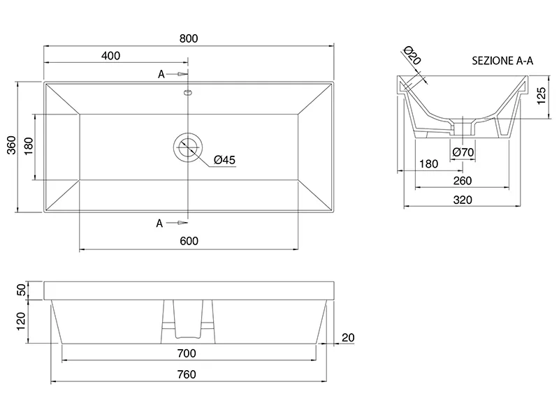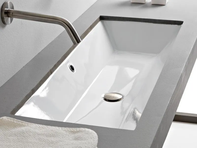 SCARABEO TEOREMA 2.0 5136 Раковина встраиваемая с сливом-переливом, без отверстия под смеситель. Размеры: 80x36x17h см. Высота борта раковины 5см. Цвет White.