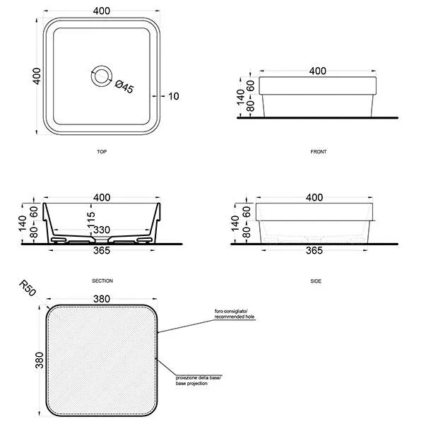 Раковина встраиваемая Cielo Enjoy EJLASIQ AG.