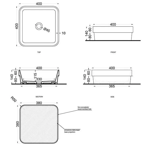Раковина встраиваемая Cielo Enjoy EJLASIQ CN.