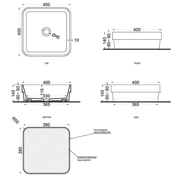Раковина встраиваемая Cielo Enjoy EJLASIQ FN.