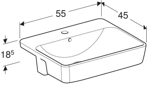 500.681.01.1 Geberit VariForm Раковина полувстраиваемая в столешницу квадратной формы, 55х45 см, с отв. под смеситель, с отв. перелива
