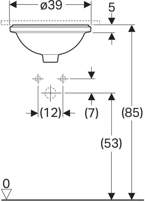 500.746.01.2 Geberit VariForm Раковина с установкой под столешницу круглой формы, D1=33 см, без отв. под смеситель, без отв. перелива