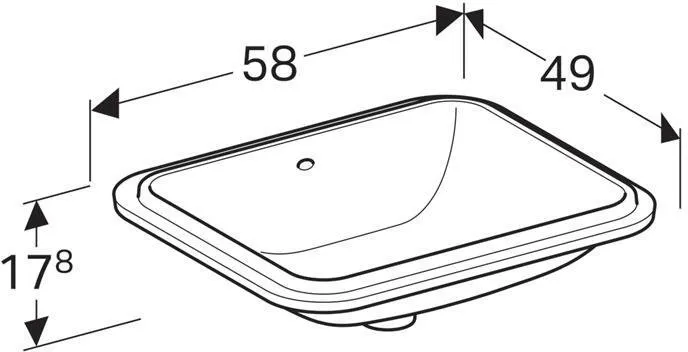 500.764.01.2 Geberit VariForm Раковина с установкой под столешницу прямоугольной формы, T1=50х40 см, без отв. под смеситель, с отв. перелива