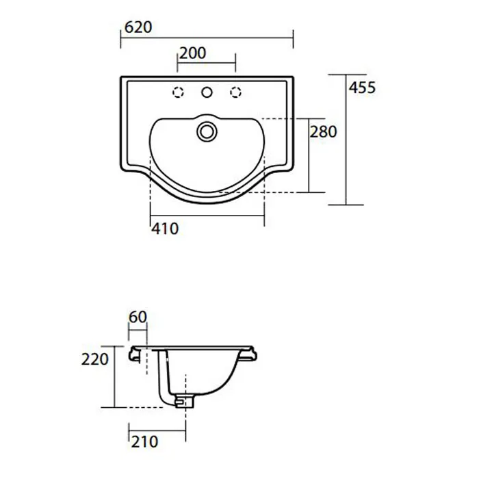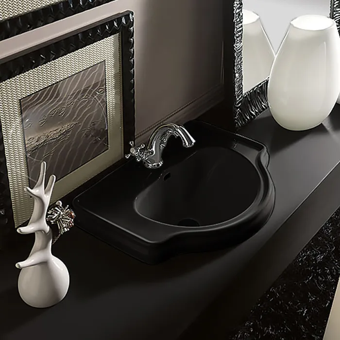 Раковина встраиваемая Kerasan Retro 62х45.5, 1 отв под смеситель, с переливом, черный 103004 Nero lucido *1