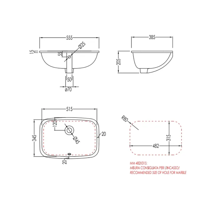 - Форма: Прямоугольная