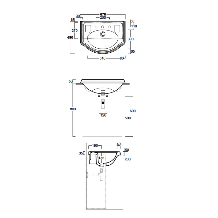 Три отверстия под смеситель предоставляют возможность выбора наиболее подходящего варианта для вашего интерьера.